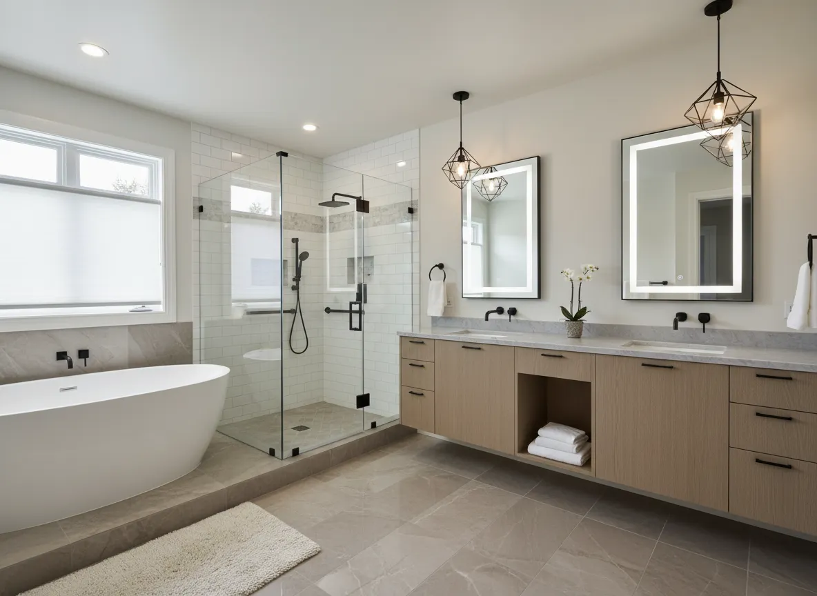 Upgrade your bathroom with modern lighting and fixture upgrades that create a brighter, more refined space.